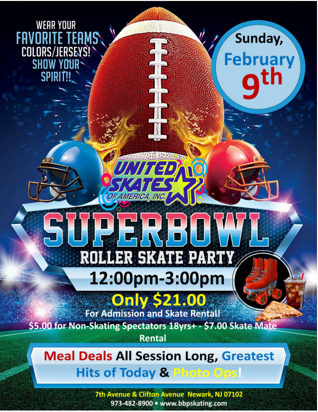 Superbowl Watch Party Adult Skate Feb 9 Superbowl Watch Party Adult Skate Featured February 9, 2025 @ 8:00 pm - 12:00 am