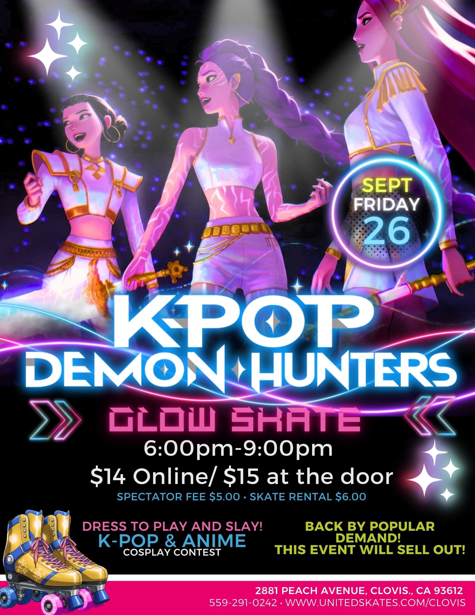 Join us for the K-Pop Demon Hunters Glow Party—featuring nonstop K-Pop hits, cosplay contests, glowing lights, and epic vibes.