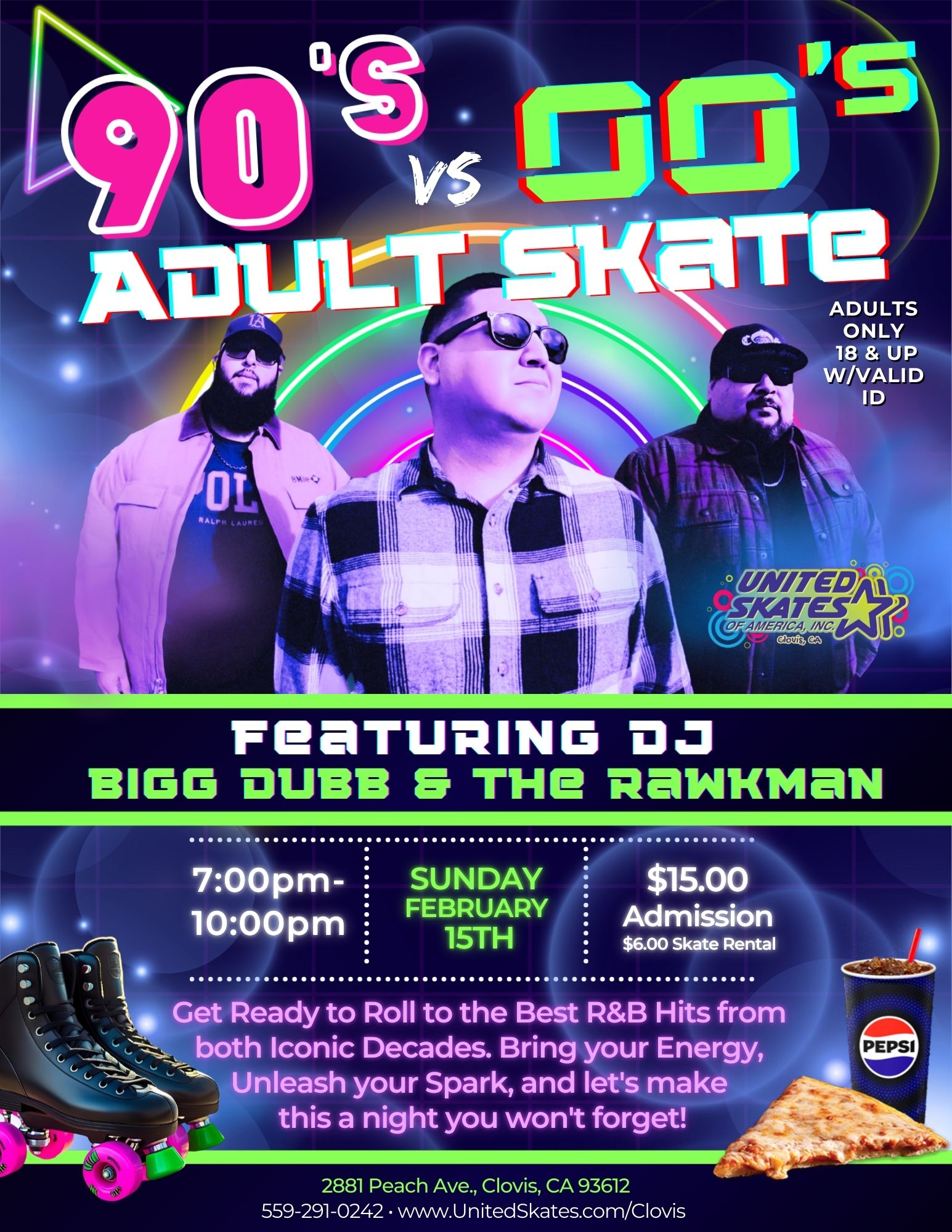 Join us for 90’s vs 2000’s Adult Skate, where the best R&B hits from both eras collide on the rink. Whether you’re team 90’s or team 2000’s, this is your night to roll, vibe, and settle the debate — on wheels.