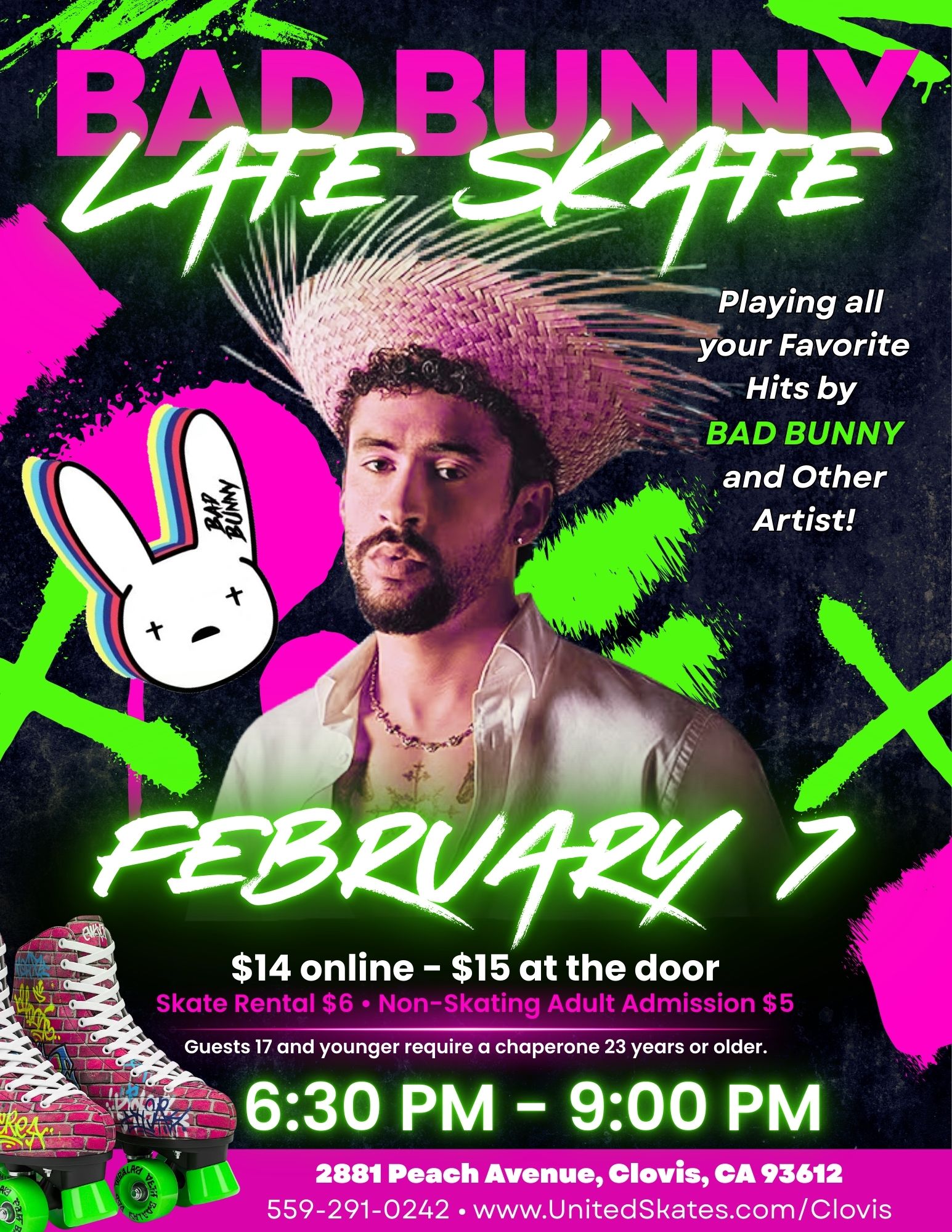 #BadBunny #LateSkate #SkateParty #ClovisEvents