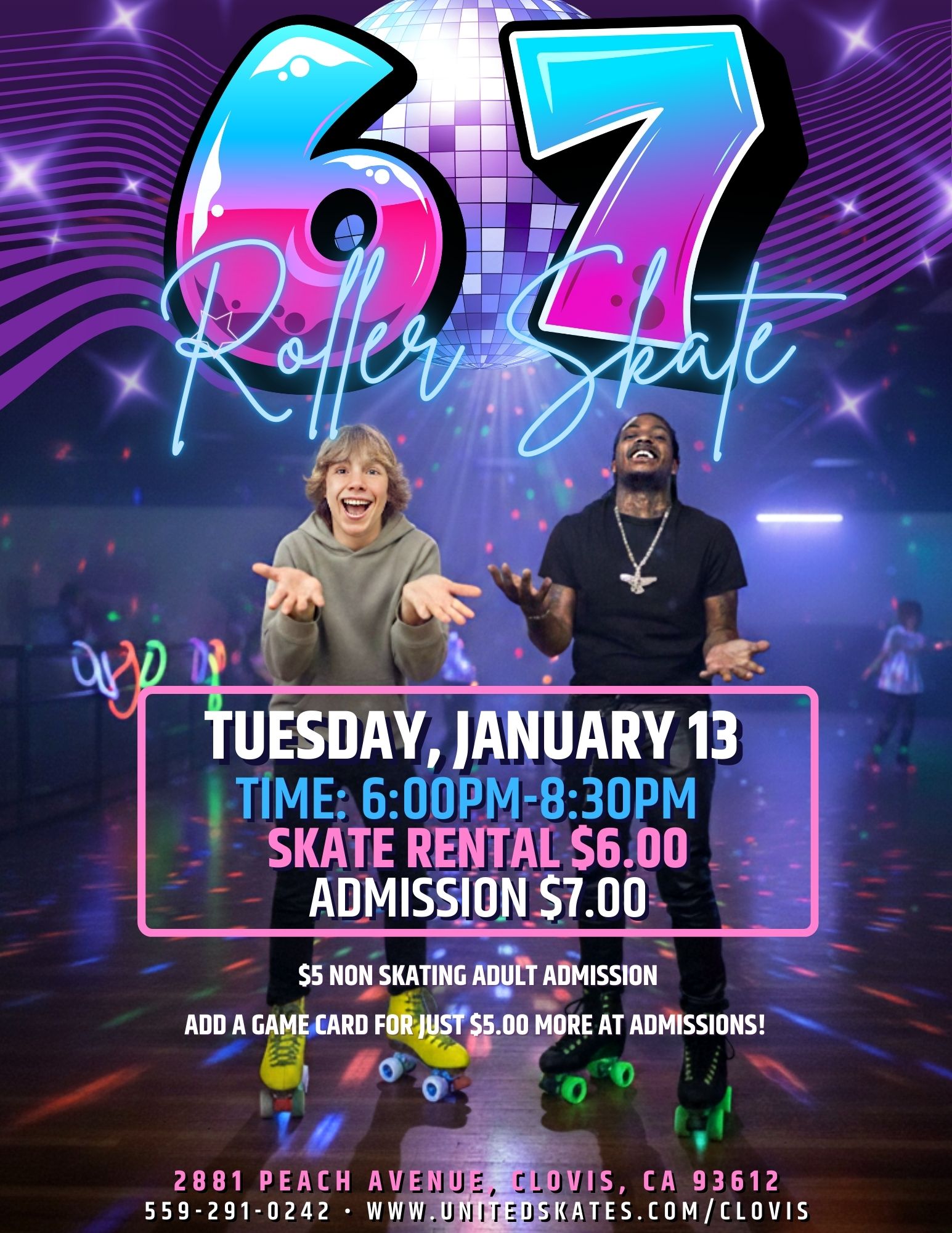 Our 67 Roller Skate Night is all about fun vibes and music — no explanation needed, just roll with it.