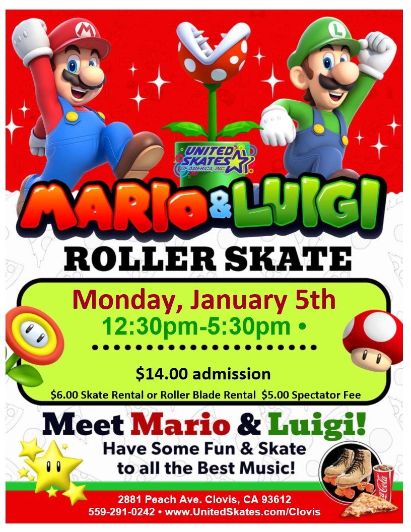 #MarioAndLuigiSkate #UnitedSkatesClovis #LevelUpYourFun #RollerSkateParty #ClovisEvents