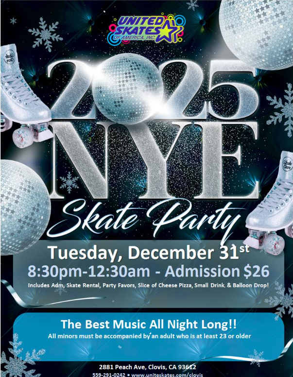 $26 Admission, Includes Skate Rental, Party Favors, Slice of Cheese Pizza, Small Drink, and Balloon Drop!