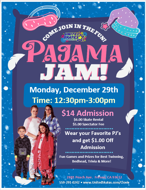 #PajamaJam #CozySkateDay #UnitedSkatesClovis #FamilyFun