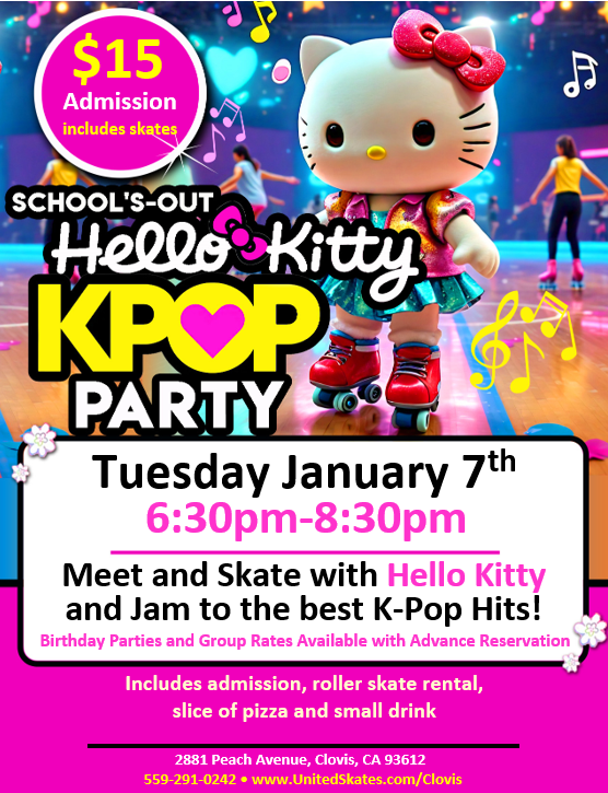 Hello Kitty K-Pop Skate Party! Get ready for a purr-fectly fun night of skating, music, and excitement! Join us at United Skates of Clovis for the Hello Kitty K-Pop Party […]