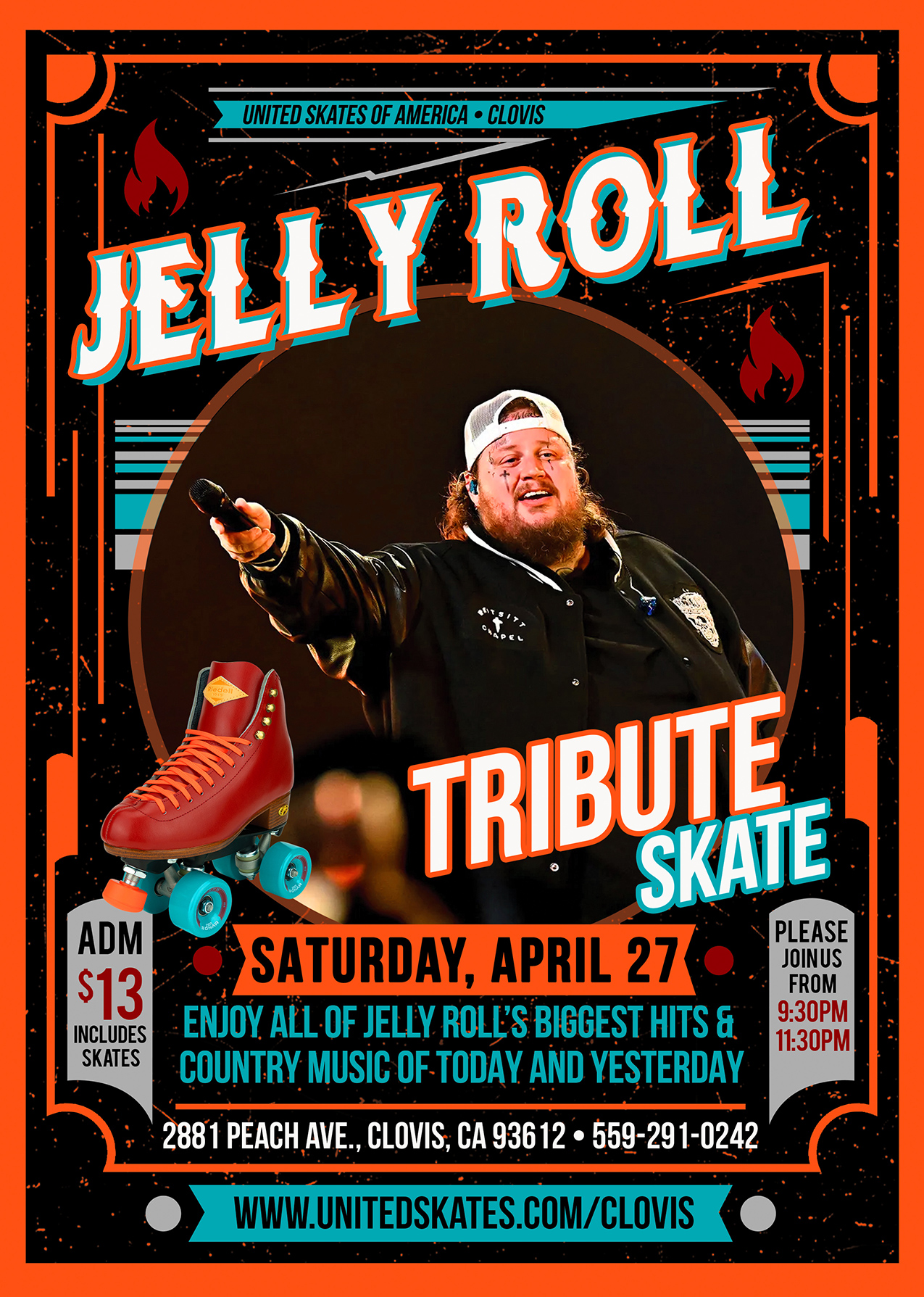 Admission $13 includes skates Come skate to your favorite Jelly Roll songs, and other favorites of today and yesterday All minors must be accompanied by an adult at least age 23