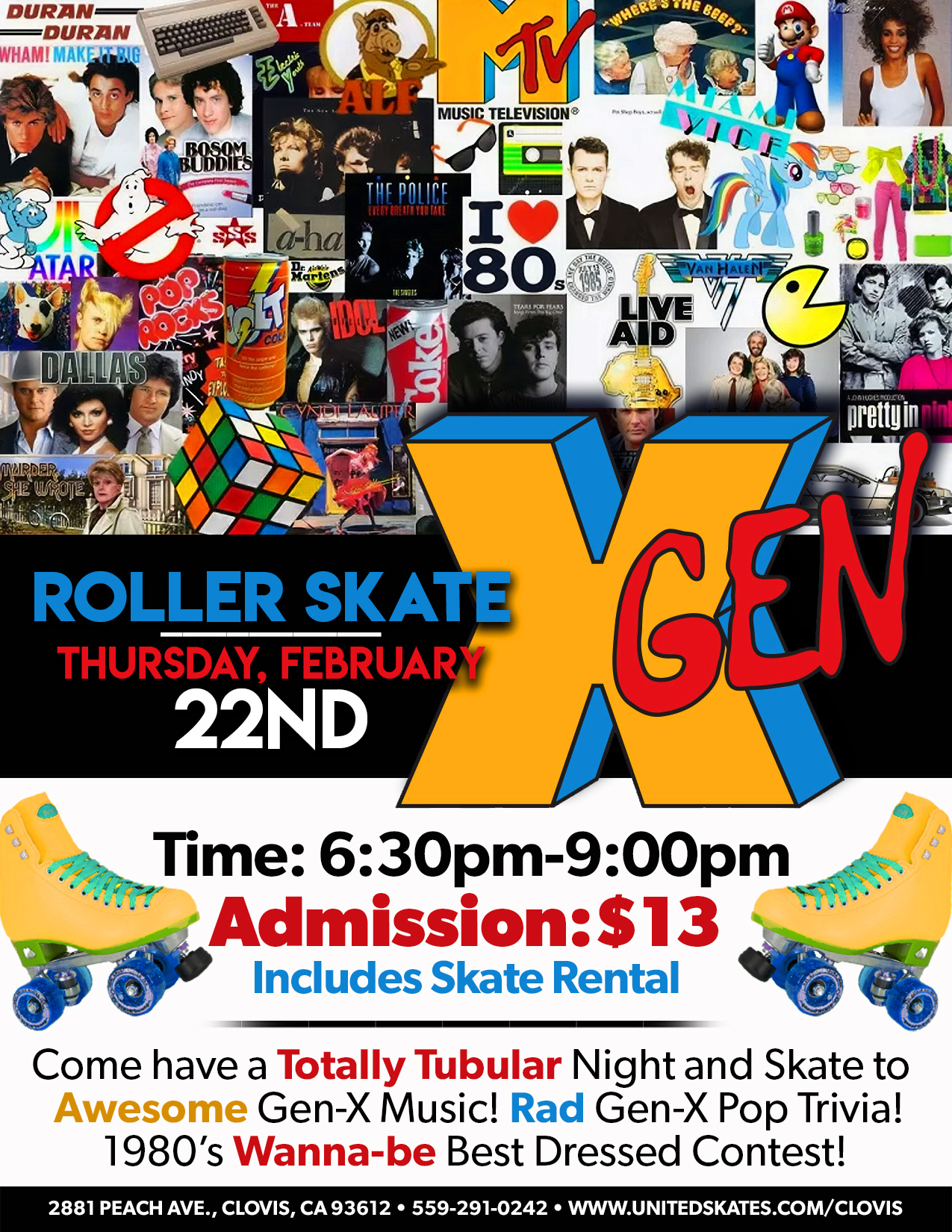 Admission $13 includes skate rental Dress up contest Trivia Favorite songs all us Gen X-ers remember from back in our day