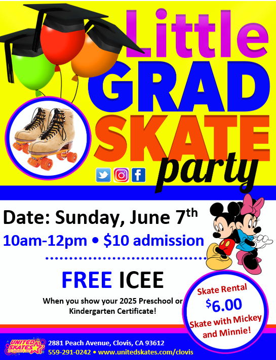 📍 United Skates of America – Clovis📅 Saturday, June 7, 2025🕖 Time: 3:30 PM – 6:00 PM💲 Admission: $14 when purchased online in advance, $15 at the door| Skate Rental: $6