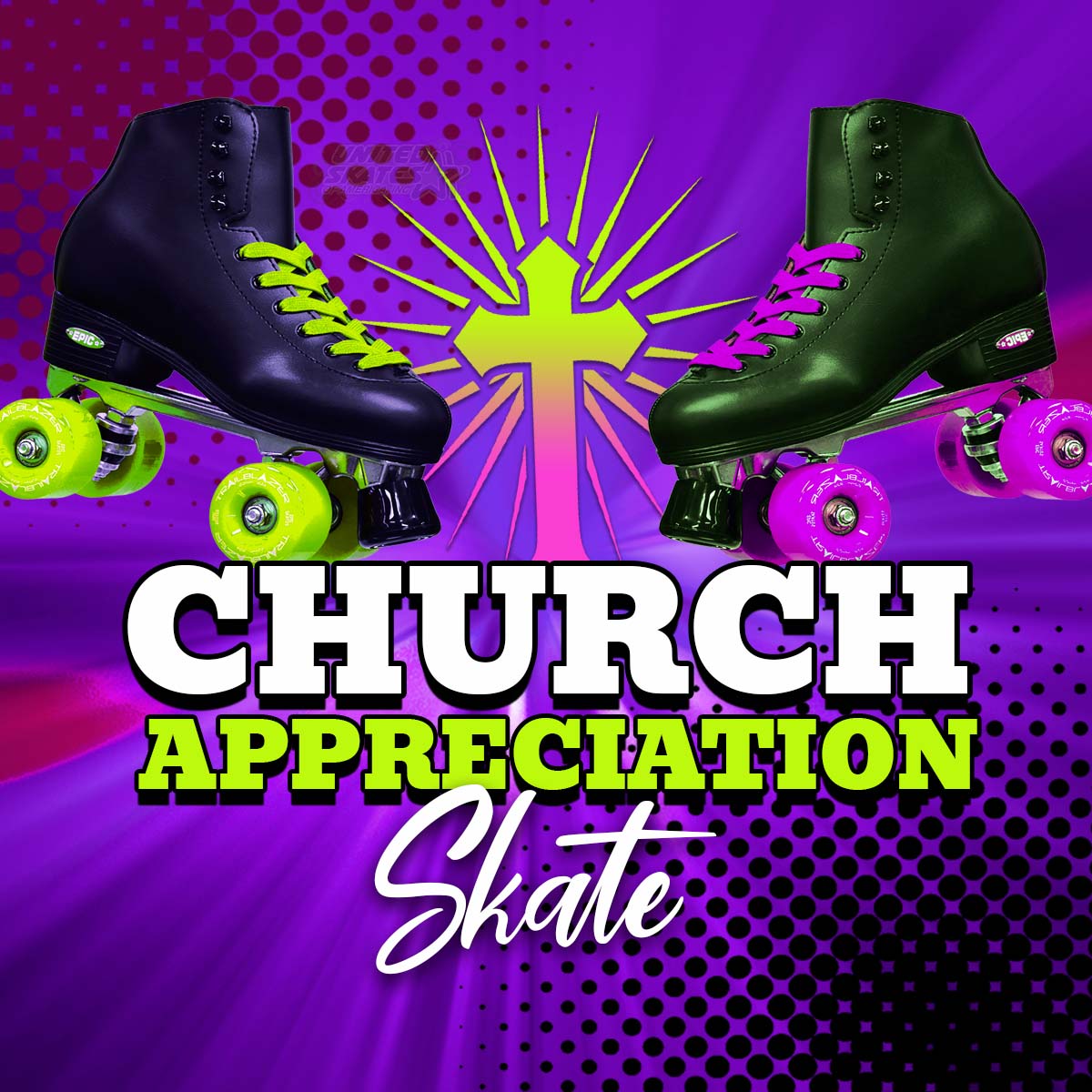 Join us for a fun night roller skating. We will keep the glow lights on all session. Playing your favorite family songs and gospel songs. $13 admission, includes skate rental