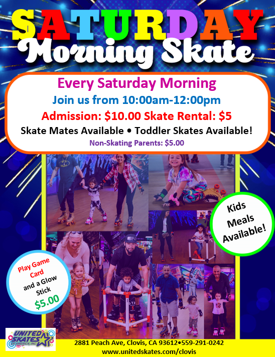 United Skates Of America Clovis 2881 Peach Ave., Clovis, CA, United StatesAdmission: $13.00 Skate Rental: $5.00 Top 40 Music