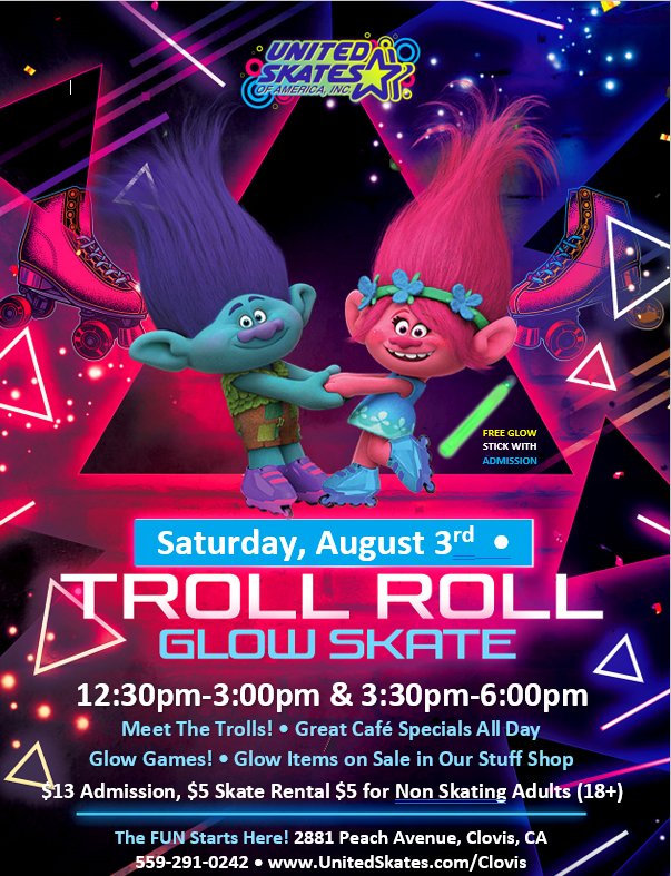 🌟✨ Get ready to glow with Poppy and Branch at our Glow in the Dark Troll Roll on August 3rd! 🎉 Join us from 12:30pm-3pm and 3:30pm-6pm for an epic adventure under neon lights! Meet your favorite Trolls, skate to your heart's content, and immerse yourself in glowing fun! Admission is $13 and rentals are […]