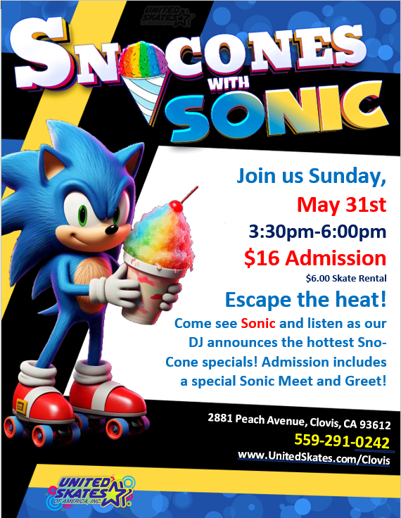 🌀 SONIC SNO-CONE SKATE! 🍧 Escape the heat! Come see Sonic and listen as our DJ announces the hottest Sno-Cone specials! ❄️🛼 🎟️ Admission: $16🛼 Skate Rental: $6 📸 Special […]