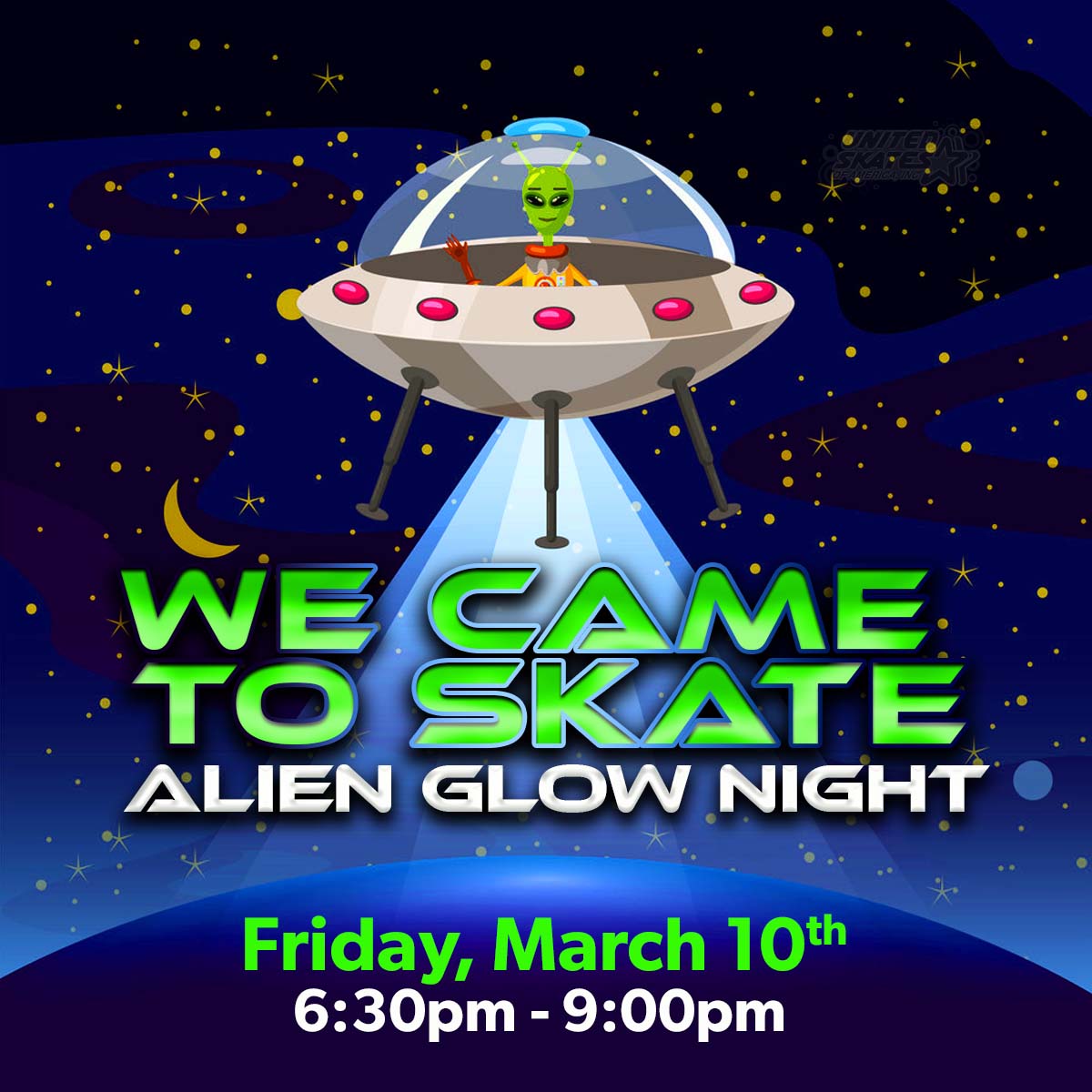 We Came To Skate: Alien glow night 6:30pm to 9:00pm