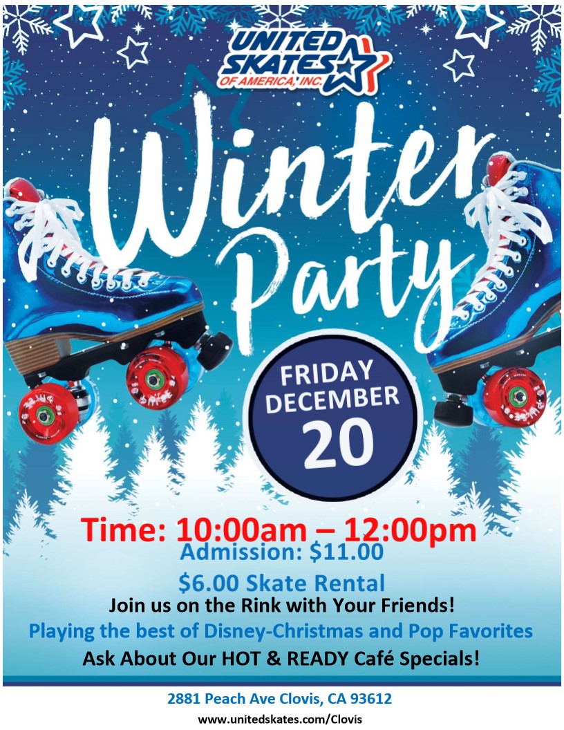 ❄️🎶 Winter Party Vibes Are Rolling In! 🎶❄️ Grab your friends and glide into the holiday spirit at our Winter Party! 🗓️ Friday, December 20 ⏰ 10:00am – 12:00pm 📍 United Skates of America – Clovis, CA 🎧 We’re spinning the best of Disney-Christmas and Pop Favorites 🛼 Admission: $11.00 | Skate Rental: $6.00 🍕 […]