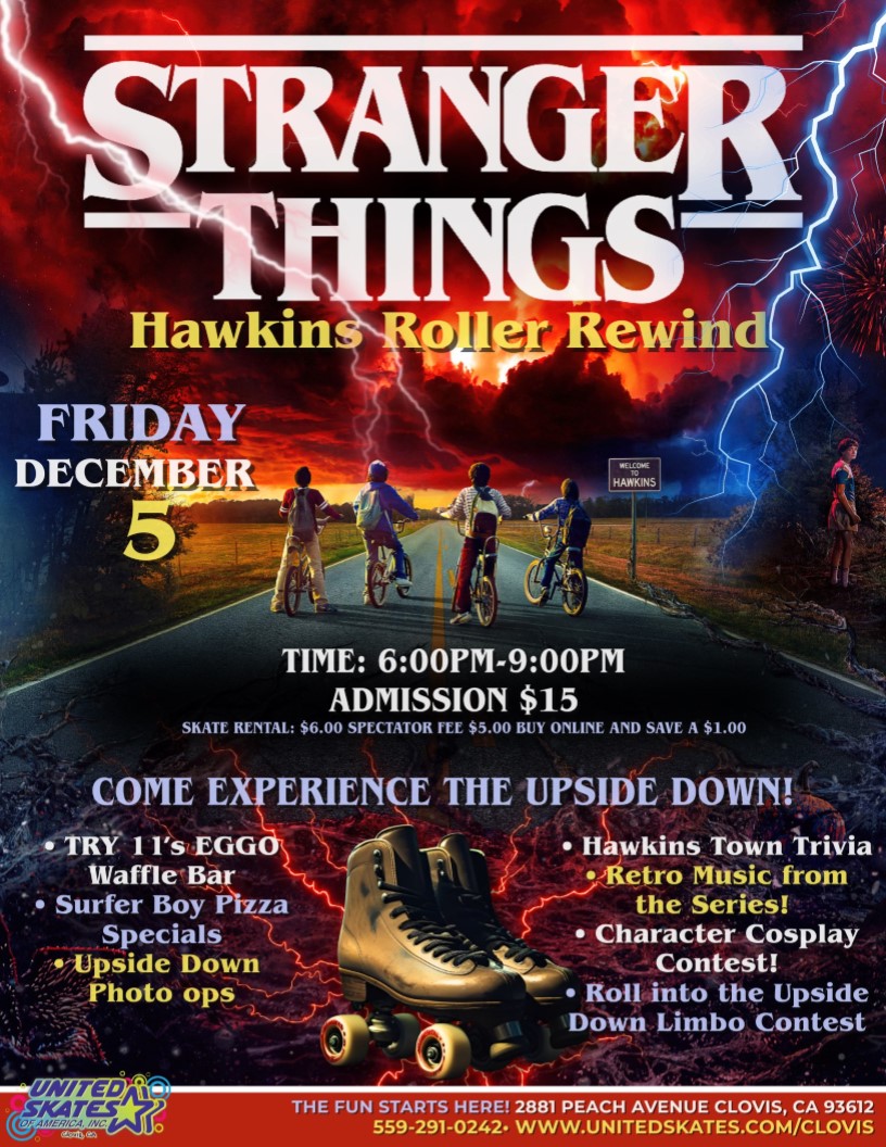 🛼✨ STRANGER THINGS SKATE NIGHT ✨🛼 Step into the Upside Down at United Skates of America, Clovis! 📅 Friday, December 5 🕕 6:00 PM – 9:00 PM 🎟️ Admission: $15 | Skate Rental: $6 | Spectator Fee: $5 💻 Save $1 when you buy online: www.unitedskates.com/clovis 👾 Hawkins comes alive with: 🥞 11’s Eggo Waffle […]