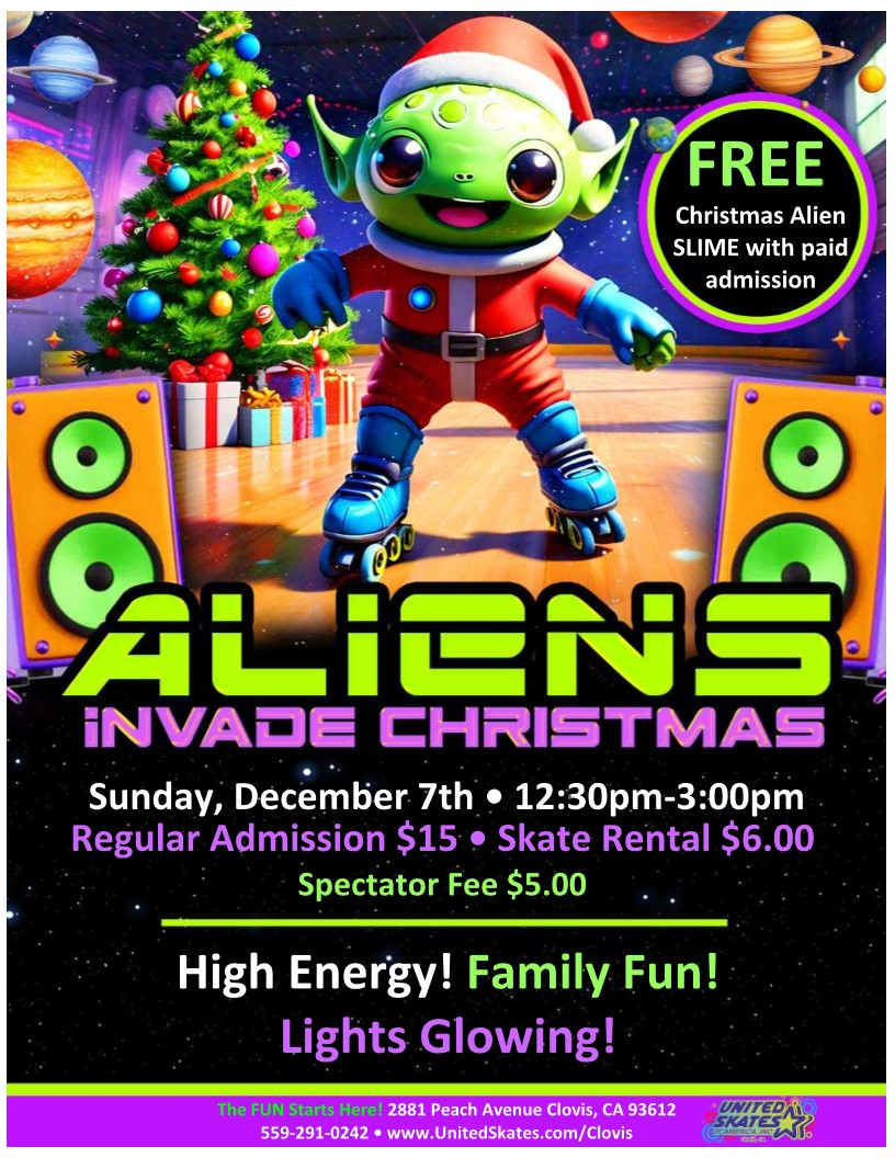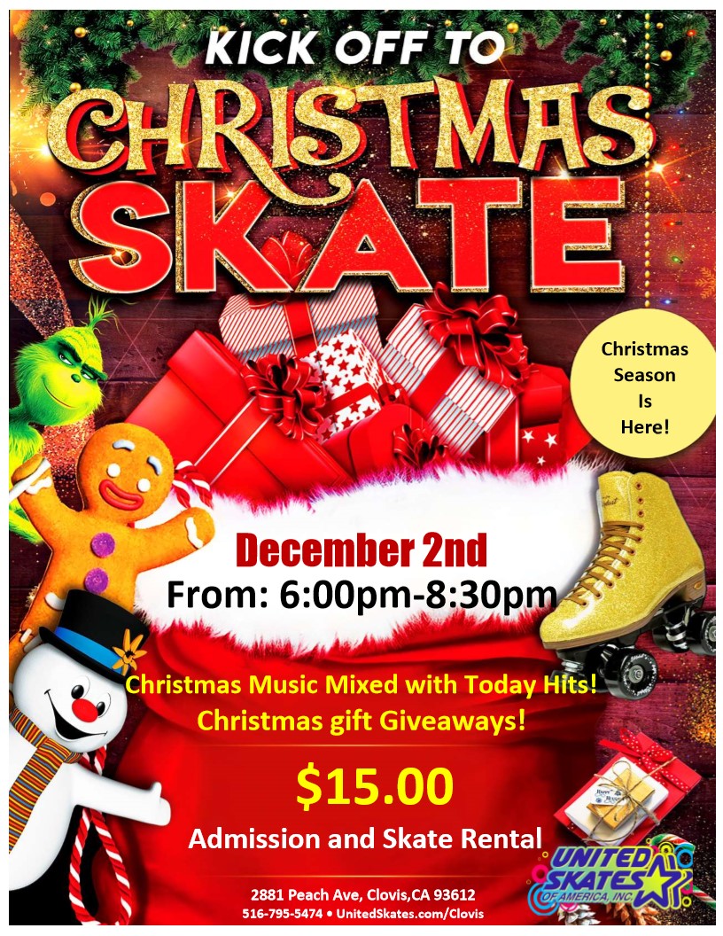 🎄✨ KICK OFF TO CHRISTMAS SKATE ✨🎄 The holiday magic starts HERE at United Skates of America, Clovis! 🗓️ Saturday, December 2nd 🕕 6:00pm – 8:30pm 📍 2881 Peach Ave, Clovis, CA 93612 🎶 Get ready for Christmas music mixed with today’s hits 🎁 Win awesome Christmas gift giveaways ⛸️ Admission + Skate Rental: $15.00 […]