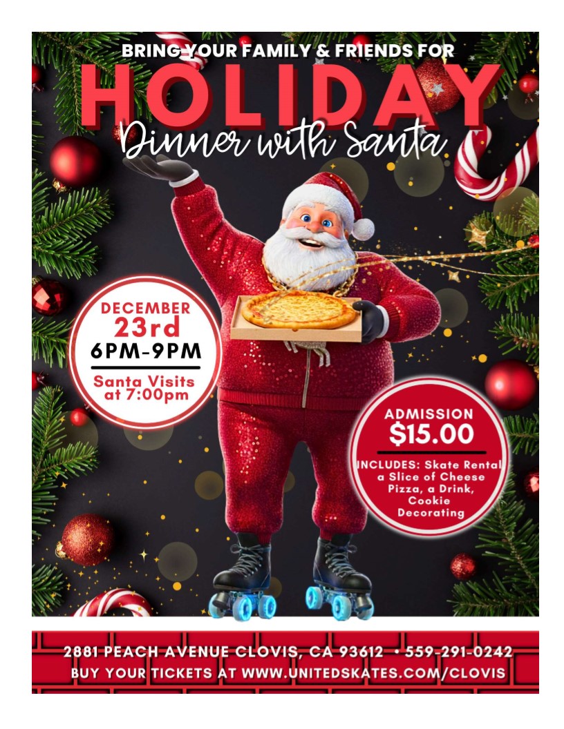 🎉 FREE DINNER SKATE NIGHT! 🍕🛼 Mark your calendars for Wednesday, December 10th from 6:00pm to 8:30pm—we’re serving up fun AND food at United Skates of America in Clovis! For just $15.00 per person, you get:✅ Admission✅ Skate rental✅ A slice of pizza✅ A refreshing Pepsi 👀 Not skating? Spectators are only $5.00! Bring your crew, lace […]