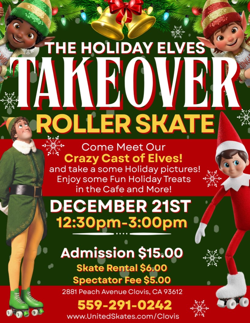 🎄✨ ELVES. SKATES. HOLIDAY CHAOS. ✨🎄Get ready for the most magical roller skating event of the season! The Holiday Elves are TAKING OVER United Skates of America in Clovis—and they’re bringing the fun, the photos, and the treats! 🧝♂️ Meet our CRAZY cast of elves📸 Snap some festive holiday pics🍭 Enjoy sweet treats in the […]