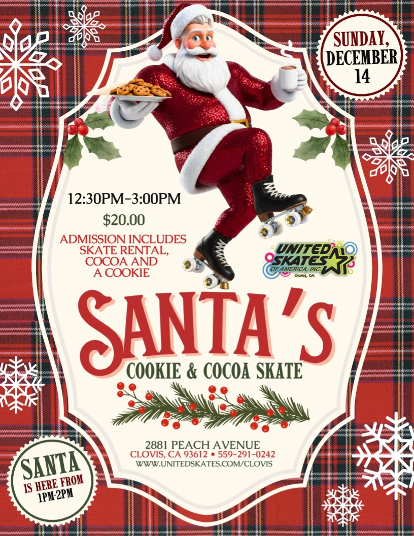 🎅🍪☕ Santa’s Cookie & Cocoa Skate! 🎄🛼 Get ready for a holly jolly good time at United Skates of America, Clovis! 📅 Sunday, December 14 🕒 12:30PM–3:00PM 🎟️ $20 Admission (includes skate rental, cocoa & a cookie!) 📸 Meet Santa from 1PM–2PM! Bring your holiday spirit and your best moves—Santa’s lacing up his skates and […]