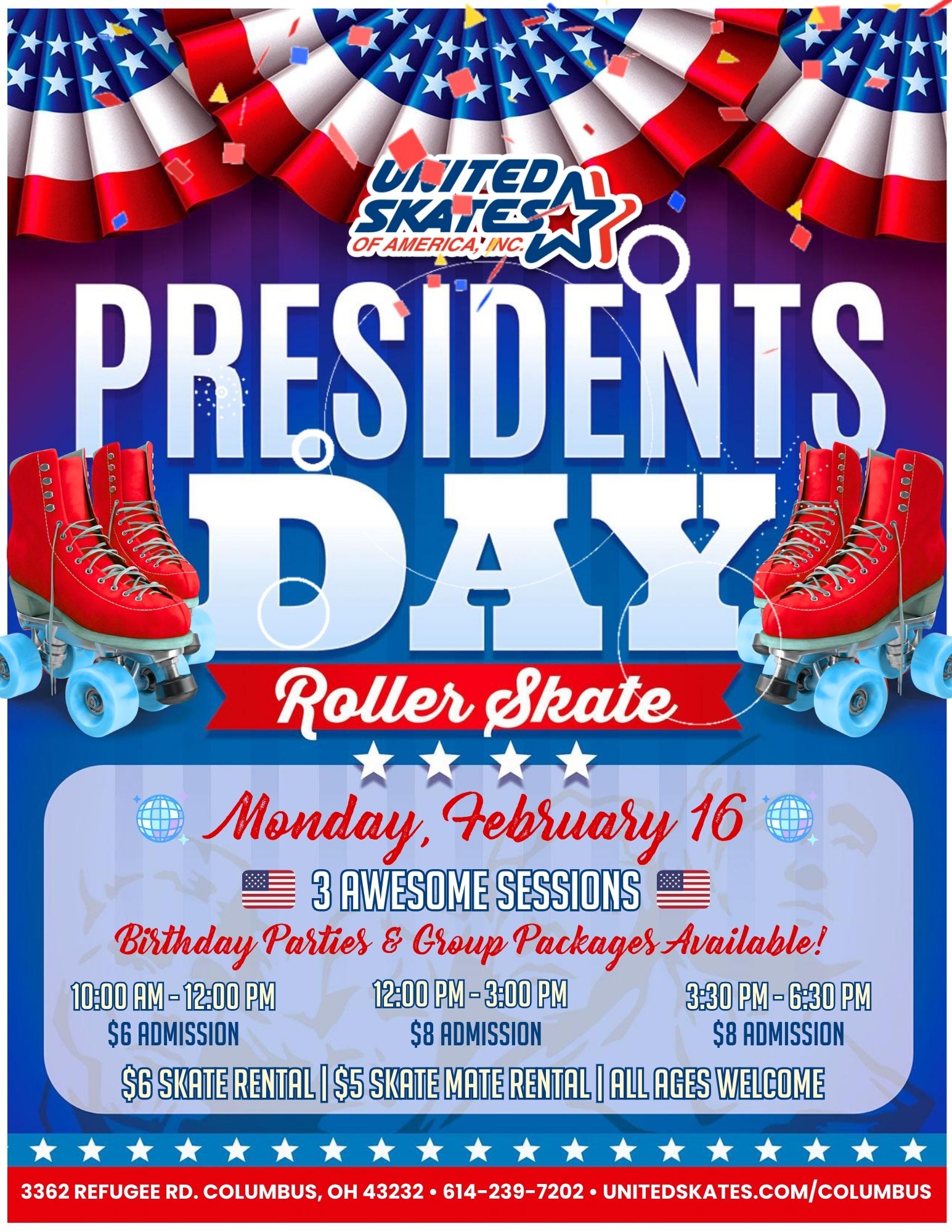Spend your President’s Day on wheels! Join us for high-energy skating and the best music in the city, keeping the vibes strong. 🎶🔥