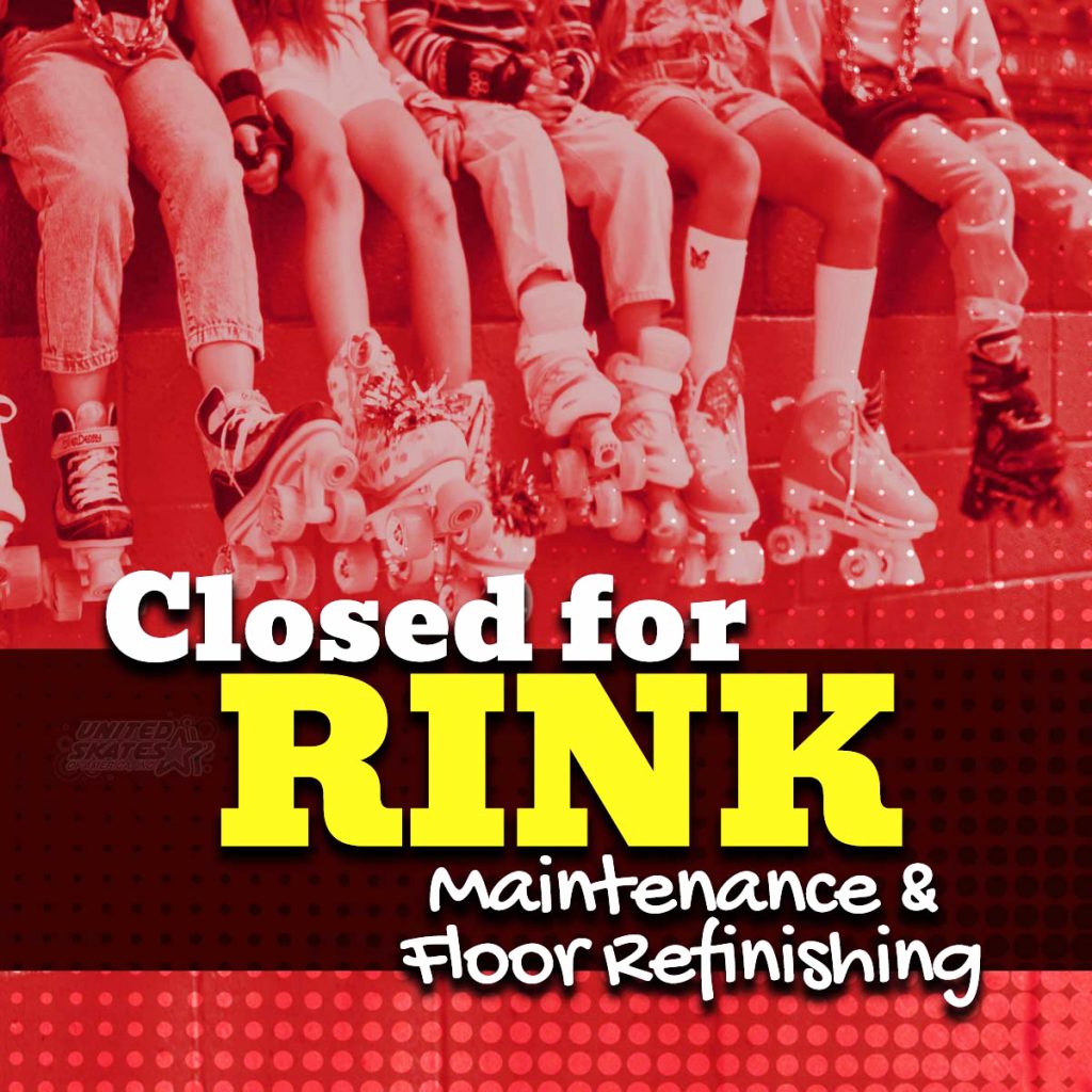 We apologize in advance for any inconvenience but we will be closed Wednesday September 3rd thru Friday September 5th afternoon for Maintenance & Rink Re-Finishing, opening back up for Friday, September 5th Hip-Hop Glow Skate at 6PM.