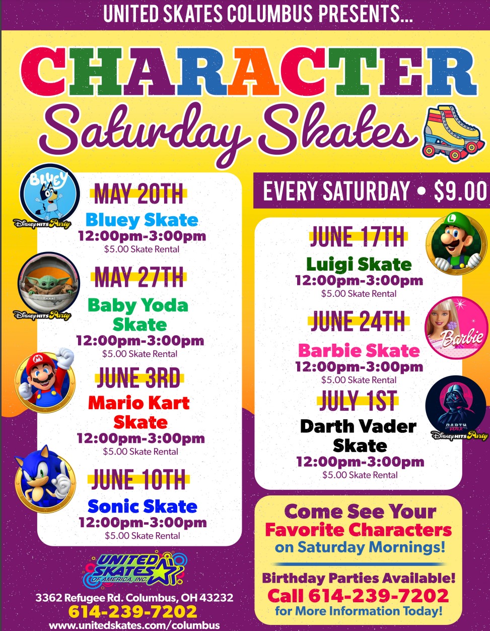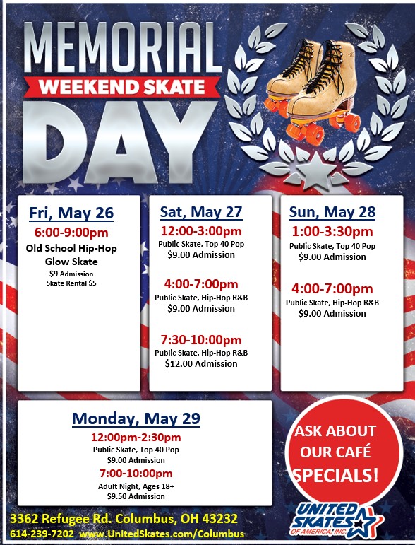 Wednesday April 12th 12:00-2:30pm 3:00-5:30pm 6:00-8:30pm All paid admission get a free small ICEE today during each session! $9.00 Admission Skate Rental $5.00 Group rates available for parties 10+ – CLICK HERE FOR MORE INFORMATION!! ALL CHILDREN AGES 3-17 MUST PAY ADMISSION & SKATE RENTAL (OR BRING THEIR OWN) NON-SKATING ADULTS MAY ENTER FOR FREE *Birthday […]