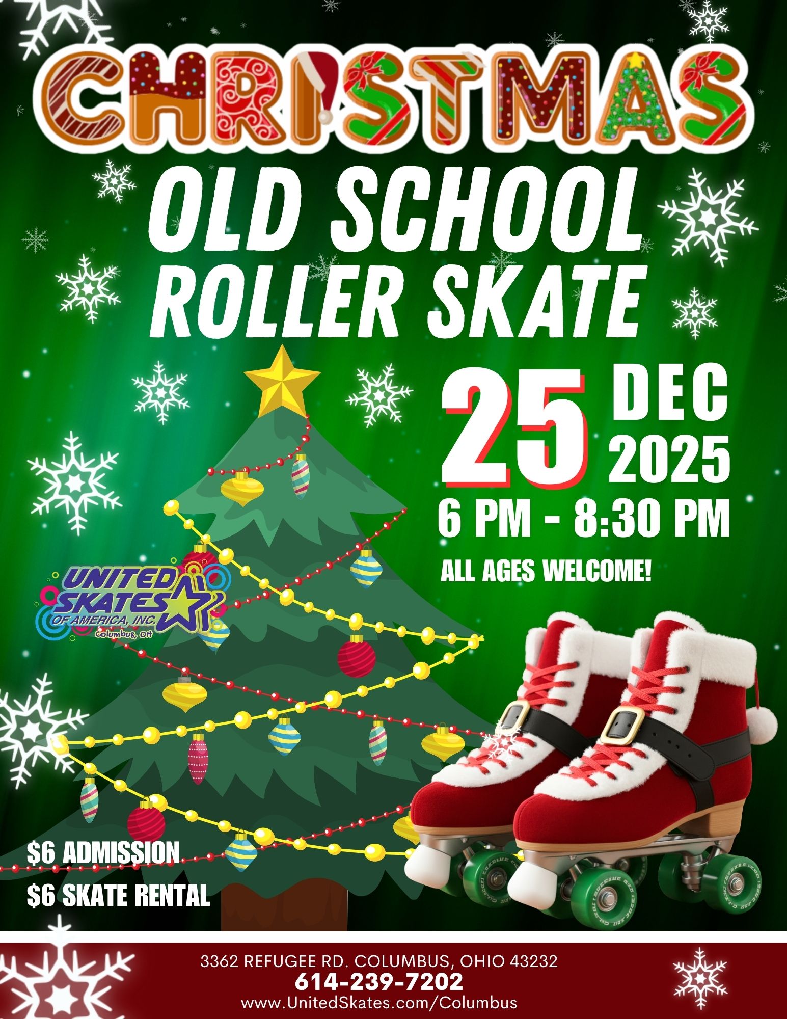 Kick off Winter Break with nonstop skating excitement! From festive Christmas skates to New Year’s Eve celebrations, every day brings a new event. Grab your friends and family and enjoy the BEST holiday fun on wheels. Tickets are available online — secure yours today! GET TICKETS HERE