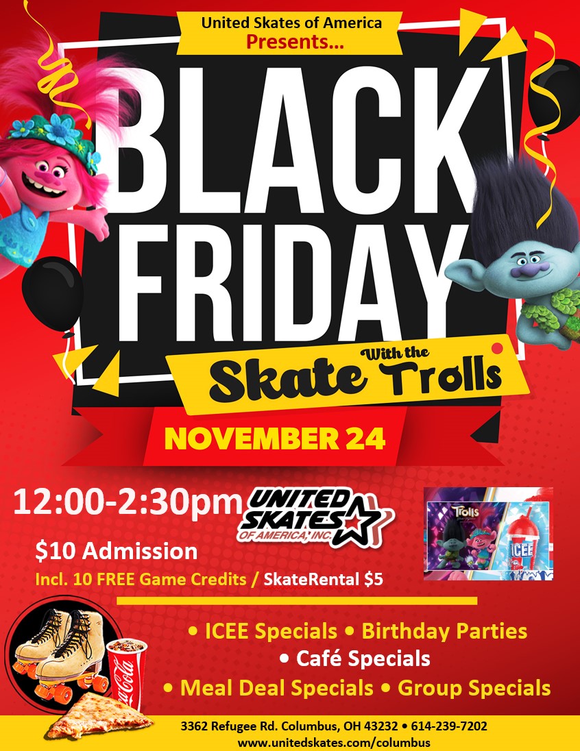 Black Friday and Trolls Skate Party Nov 24 Black Friday and Trolls Skate Party Featured 12:00 pm - 2:30 pm