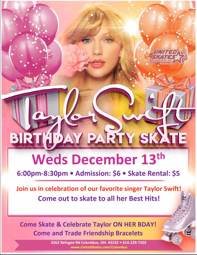 Taylor Swift Birthday Skating Event Dec 13 Taylor Swift Birthday Skating Event Featured 6:00 pm - 8:30 pm