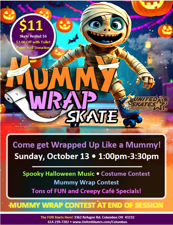 Public Skating and Birthdays – Mummy Wrap Skate Oct 13 Public Skating and Birthdays – Mummy Wrap Skate Featured 1:00 pm - 3:30 pm