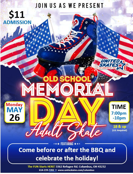 Adult Skate: Memorial Day Old School Skate Party❤️🤍💙 May 26 Adult Skate: Memorial Day Old School Skate Party❤️🤍💙 Featured 7:00 pm - 10:00 pm