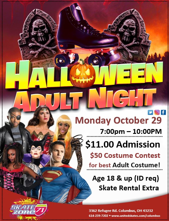 Adult Newbie Skate – Halloween Party Oct 28 Adult Newbie Skate – Halloween Party Featured 7:00 pm - 10:00 pm
