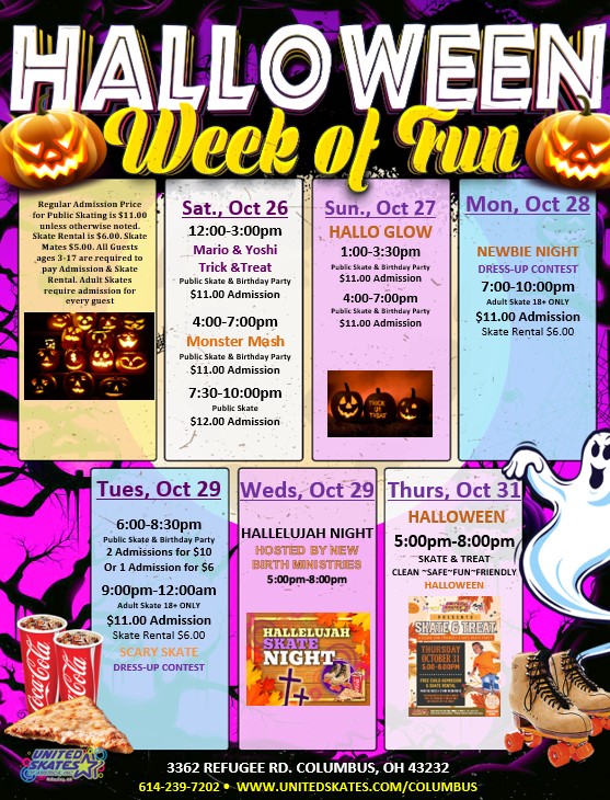 👻Halloween Week at United Skates Columbus🛼🦇 Oct 26 👻Halloween Week at United Skates Columbus🛼🦇 Featured October 26, 2024 - October 31, 2024