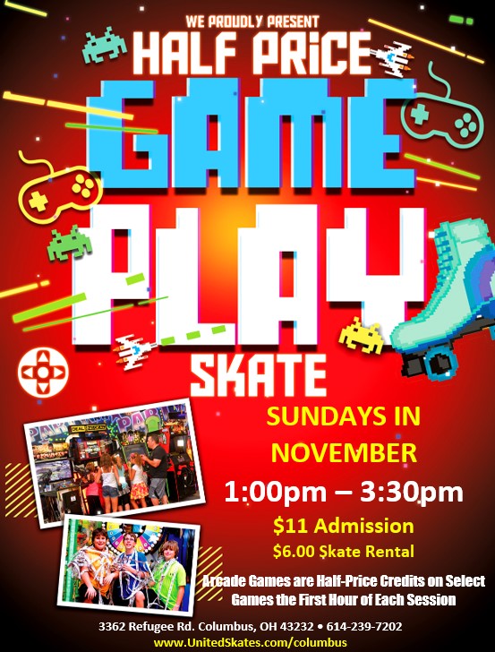 Public Skating and Birthdays; Half Price Games Nov 3 Public Skating and Birthdays; Half Price Games Featured 1:00 pm - 3:30 pm