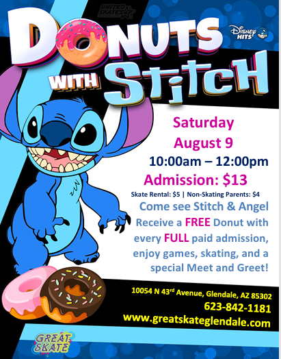 Grab your skate crew and blast off to Great Skate Glendale for a morning of mischief, music, and mouthwatering donuts!