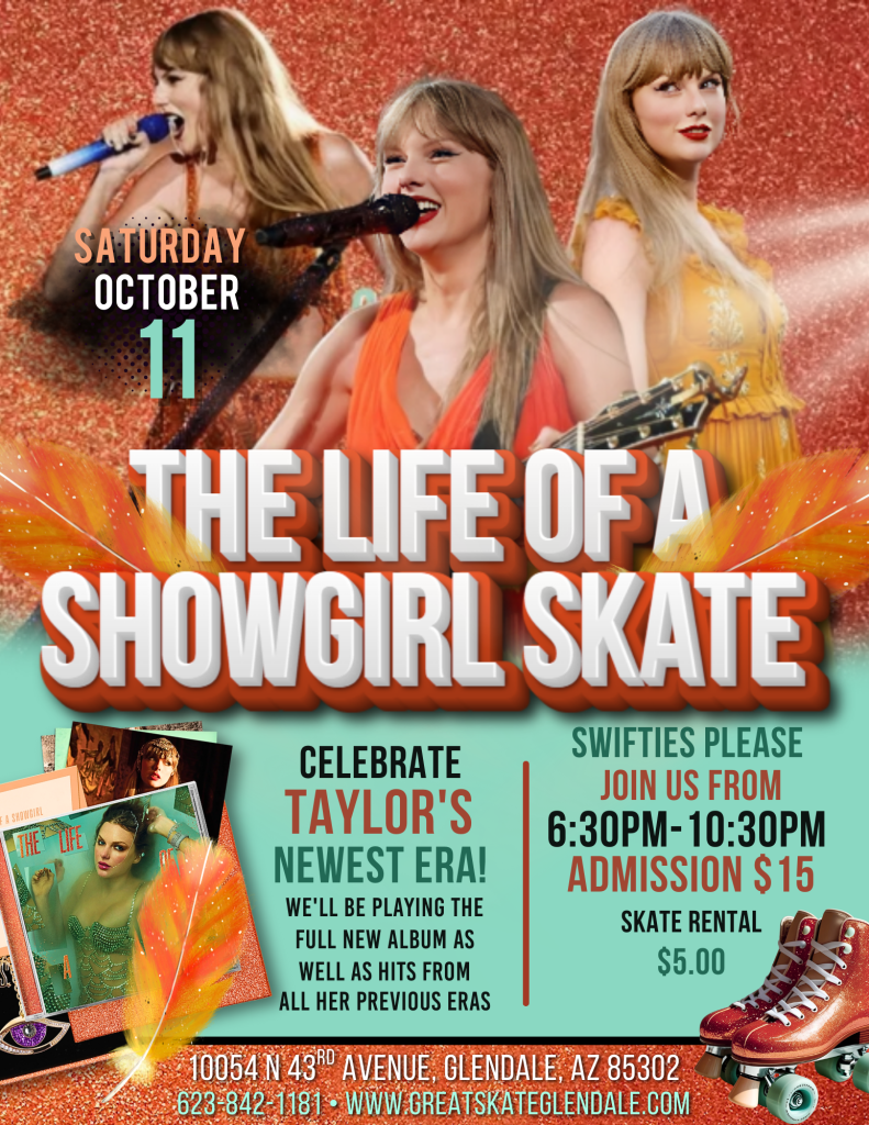 Calling all Swifties! π Step into the spotlight and skate through every era of Taylor Swiftβfrom country curls to glittering pop anthems. Weβre spinning her newest album in full plus iconic hits from every chapter of her journey. Whether you’re a Fearless fan or a Midnights devotee, this night is your chance to shine like a true showgirl.