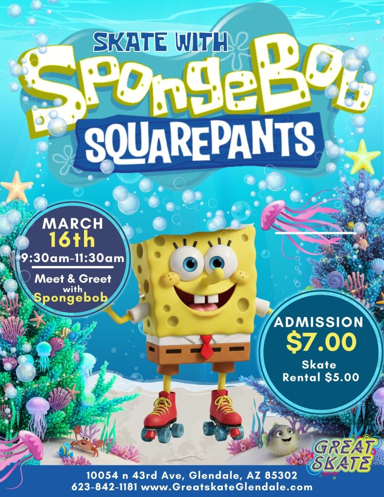 Are you ready, kids?! (I can’t hear you!) Drop on the deck and flop like a fish, because we’re turning the rink into the world’s first underwater roller-disco! Join SpongeBob SquarePants and the whole Bikini Bottom crew for a night of nautical nonsense on eight wheels.