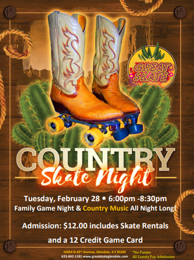 Come skate to all the best Country Hits