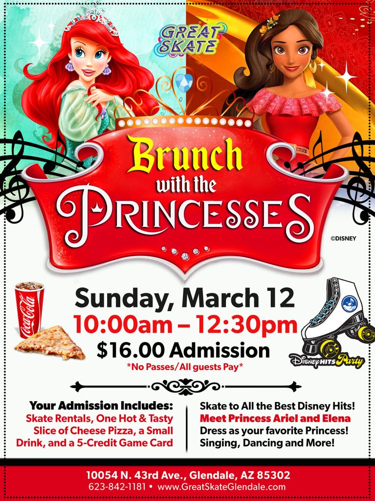 Come skate, dance, sing-along, meet and greet Princess Ariel and Princess Elena.