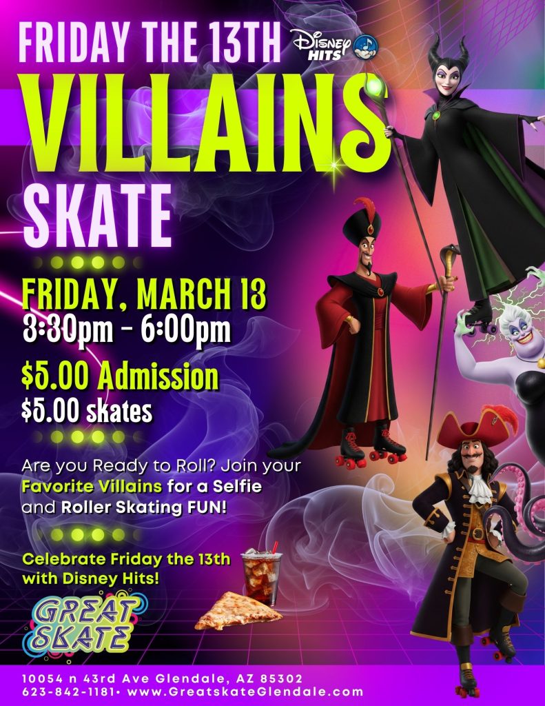 Ditch the glass slippers and grab your skates! It’s time to trade the “Happily Ever After” for a night of wicked fun. Whether you’re a misunderstood mastermind or just a little bit “rotten to the core,” join us for a high-energy roller skating event dedicated to the baddest icons in the kingdom.