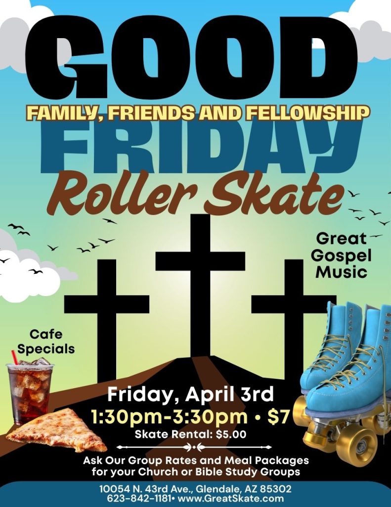 Whether you’re looking for a peaceful glide or a high-energy way to kick off the long weekend, a Good Friday skate is a fantastic way to bring the community together! Enjoy some gospel music while you roll around the rink!