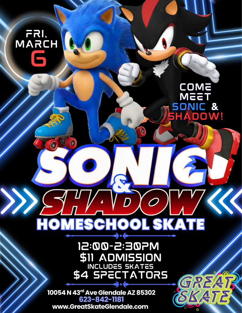 Calling all homeschoolers! Join us at Great Skate Glendale for a legendary meetup with the fastest duo in the universe | Sonic & Shadow.