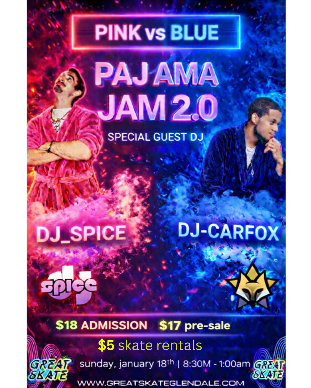 Itโs time for the PAJAMA JAM 2.0! Weโre taking over Great Skate this Sunday for the ultimate 18+ late-night session.
