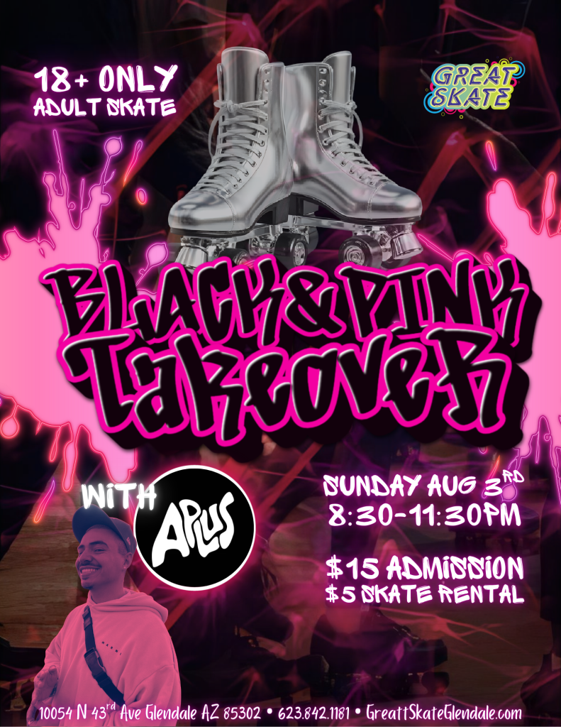Step into the spotlight and join us for a high-energy night at Great Skate Glendaleβs Black & Pink Takeover! With bold beats, neon dreams, and a live show thatβll keep you skating all night long, this event is your chance to shine.