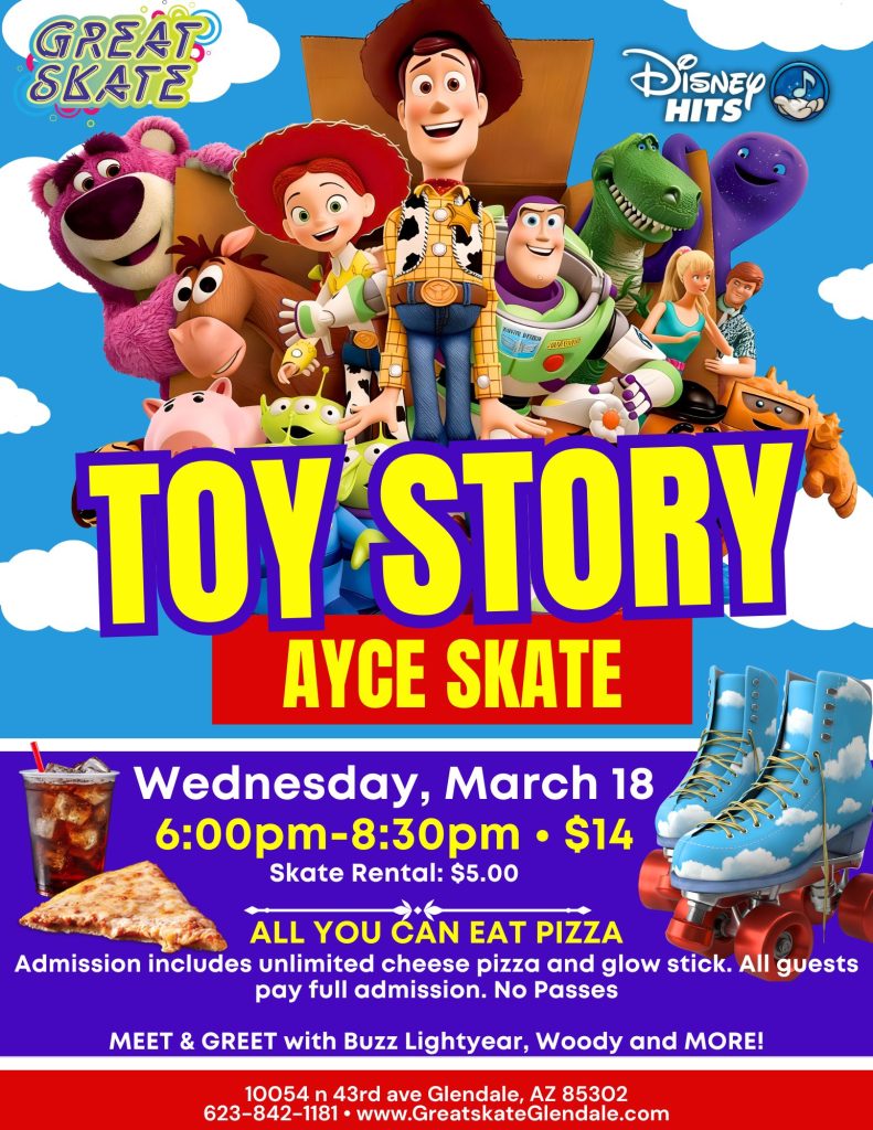Lace up your skates and prepare to shrink down to the size of a toy! We’re turning the rink into Andy’s Room, and you’re the newest plaything in the toy box. Whether you’re a high-flying Space Ranger or a rootin’ tootin’ Cowboy, it’s time to skate to infinity and beyond!