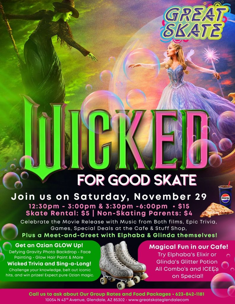 Join us for the Wicked for Good Skate on Saturday, November 29 to celebrate the movie release! It’s going to be wonderfully WICKED!