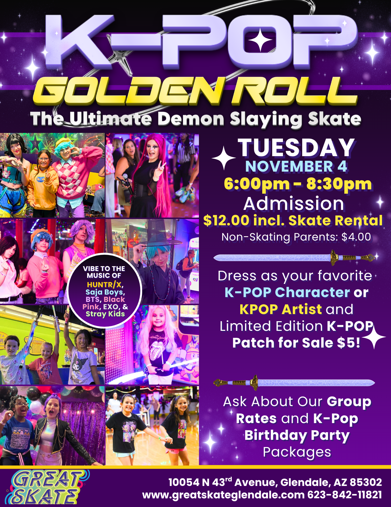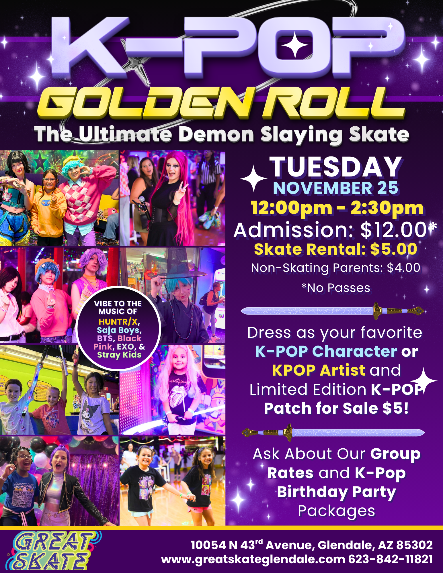 ⭐ K-POP GOLDEN ROLL ⭐ The Ultimate Demon Slaying Skate Night Get ready to bring the energy, the style, and ALL the K-Pop vibes! Join us for a night inspired by your favorite K-Pop artists and Demon-slayer-style excitement — right here at Great Skate! 💜✨ 📅 Tuesday, November 25🕕 12:00pm - 2:30pm 🎟️ Admission: $12.00 | Skate Rental: […]