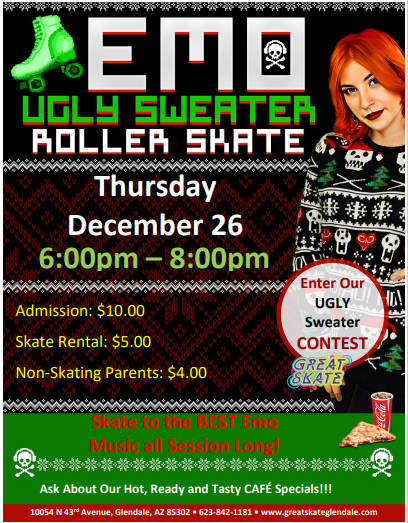 🖤 Emo Holiday Skate & Ugly Sweater Party! 🖤 Get in your feels this holiday season! Join us on Thursday, December 26, from 6 PM - 8 PM at Great […]