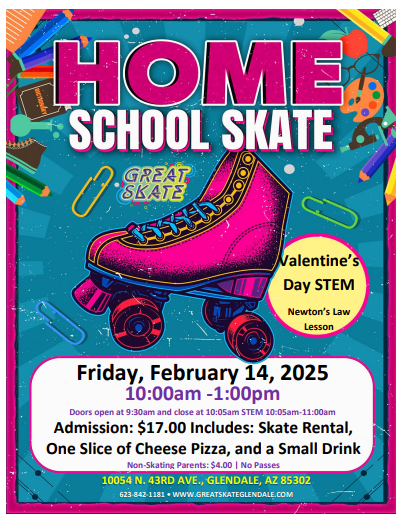 🌟 Homeschool Valentine’s Day STEM Skate! ❤️🛼 📅 Date: Friday, February 14 ⏰ Time: 10 AM - 1 PM (Doors open at 9:30 AM, close at 10:05 AM) 📍 Where: […]