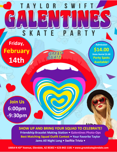 Friday, February 14 6:30pm - 9:00pm Admission: $14.00 Skate Rental: $5.00 Non-Skating Parents: $4.00 Taylor Swift Music Friendship Bracelet stations making and trading friendship bracelets. Photo station with Taylor Swift […]